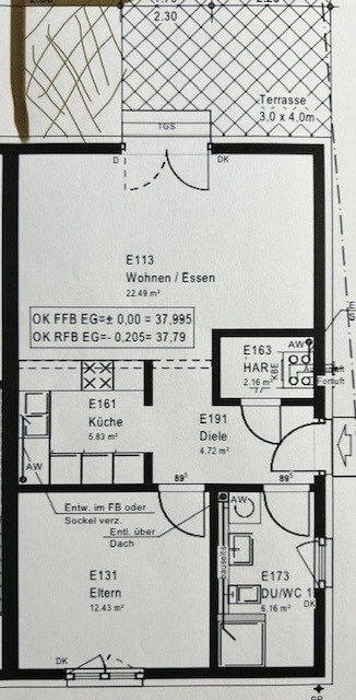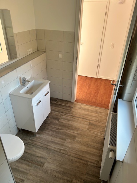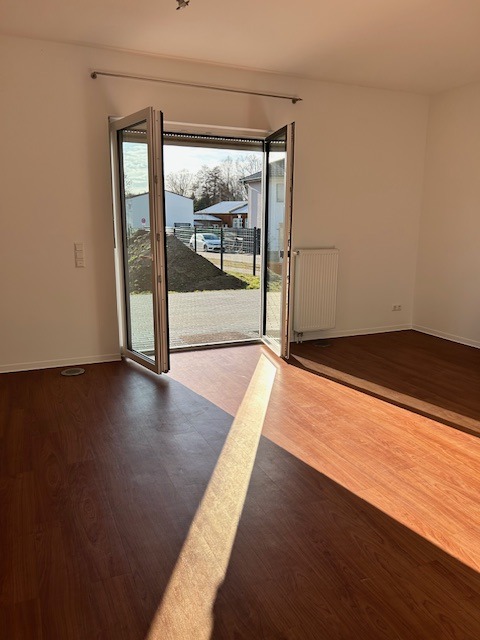 Beim Betreten der Wohnung gelangt man über eine kleine Diele (hiervon abgehend befindet sich der Hauswirtschaftsraum und das Badezimmer) in den gemütlichen Wohnbereich mit Zugang zur Terrasse. Die offene Küche ist modern ausgestattet und bietet genügend Raum zum Kochen und gemeinsamen Essen. Das Schlafzimmer bietet ausreichend Platz für ein großes Bett und einen Kleiderschrank. Das Badezimmer ist mit einer ebenerdigen Dusche und einem Fenster ausgestattet.